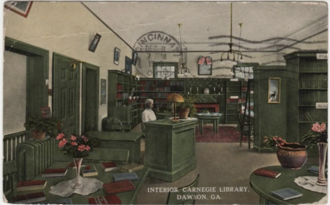 Down in Dawson, Ga the community first began to try to raise money for a library service on May 4, 1871. “The Bottle,” a temperance drama was presented to raise funds. That same month, the Excelsior Debating Society raised $35 for the library through a debate on “Is the education of a man more important than that of a woman?”The first Library Association was organized May 3, 1878. The library hall was located in one of the editorial rooms of the Dawson Journal.
